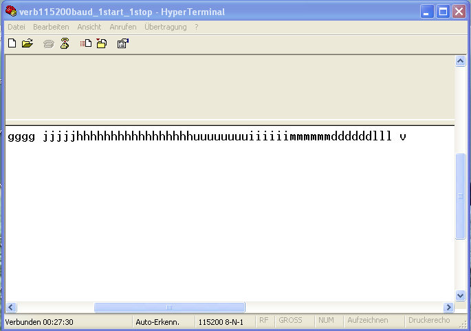 Bild 0-5: Über Tastatur gesendete und unmittelbar wieder empfangene Zeichen nach Starten des Hyper-Terminals.