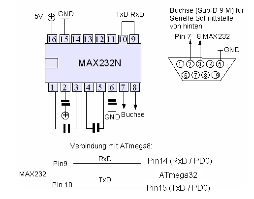Hardware - Verbinden eines ATmega32 mit einem PC über die RS232 Schnittstelle